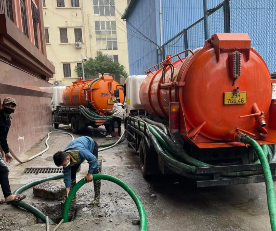 Sử dụng máy lò xo, máy nén khí, máy áp lực nước cùng hoá chất nhập khẩu, để thông cống hiệu quả .